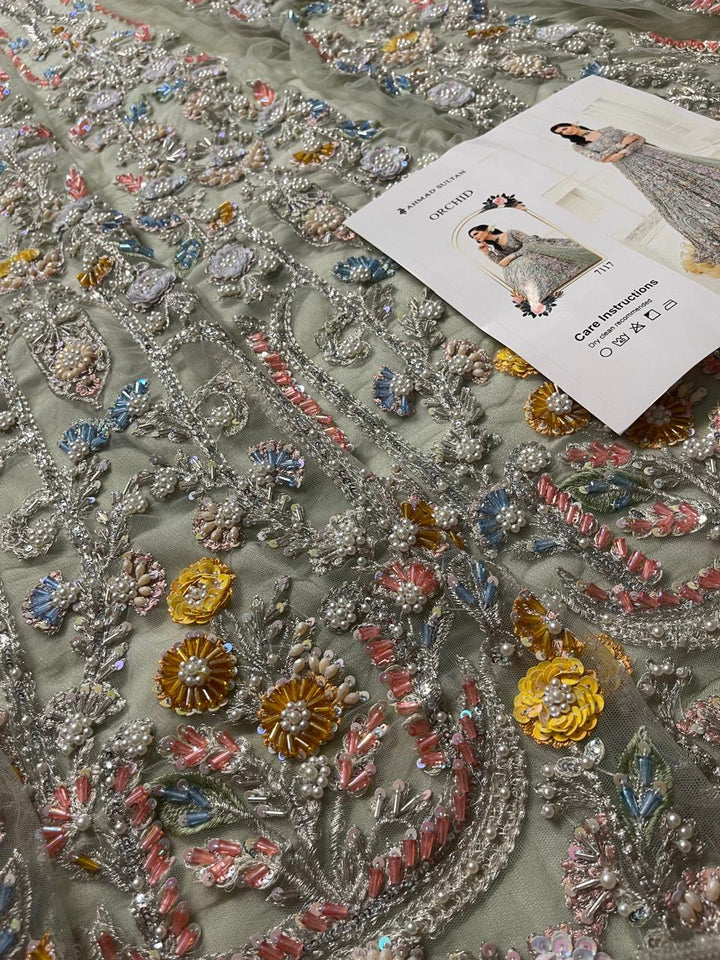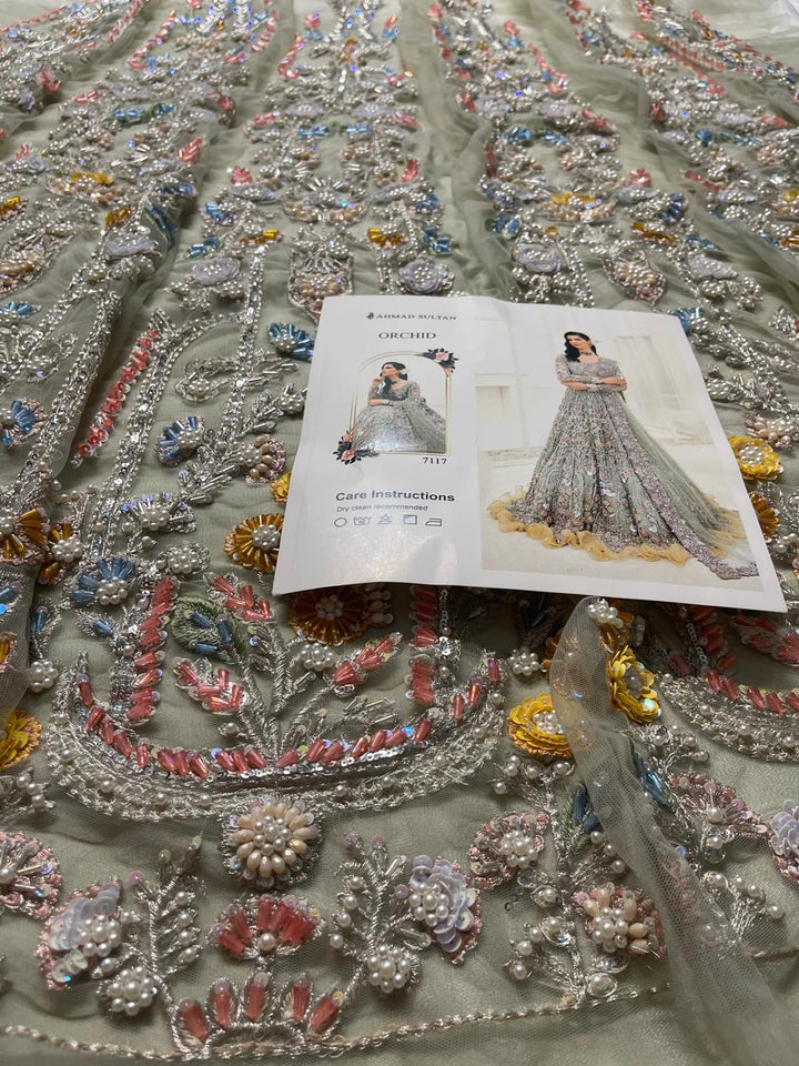 2. Embellishments: Intricate embroidery, beadwork, sequins, cut dana embellishments, kora dabka embellishments and lace details all have been included as per the specific suits requirements